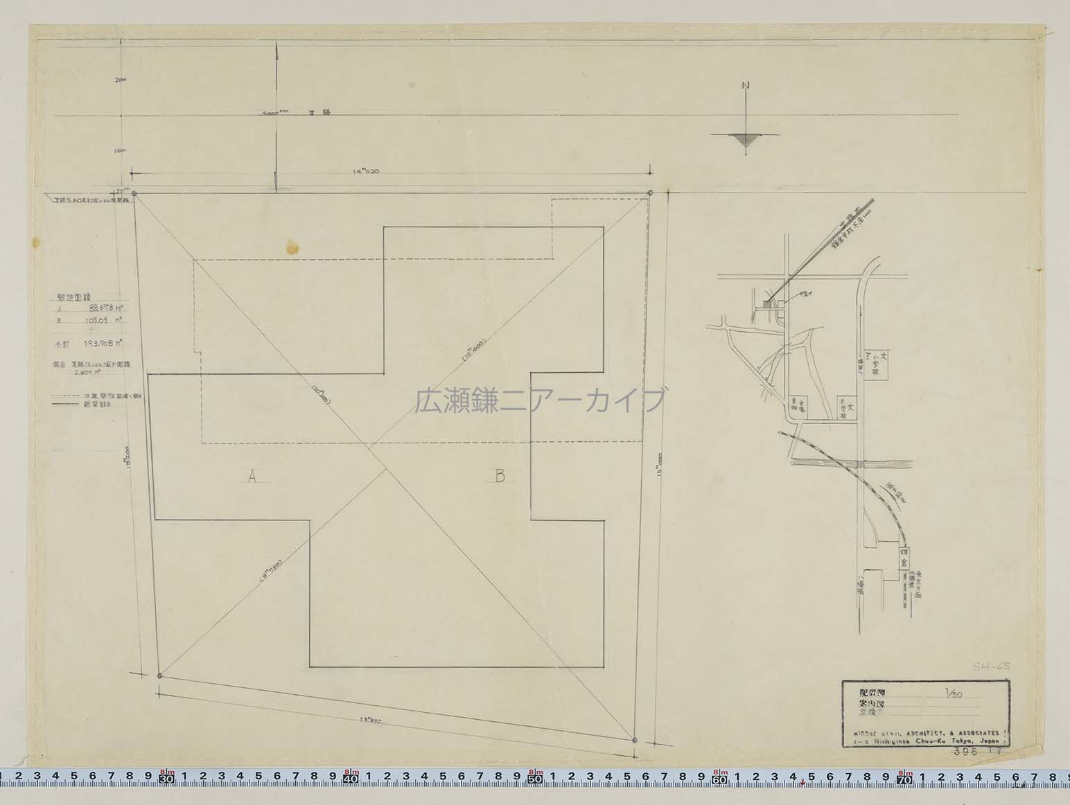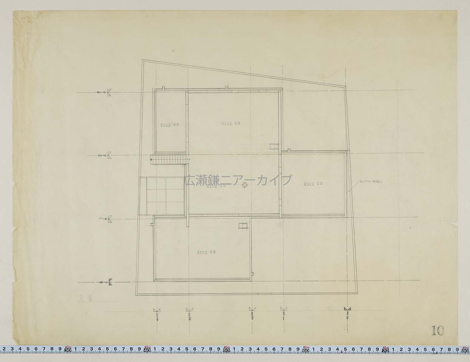 空間構成は玄関、居間、食堂、台所、和室、納戸、機械室、浴室・便所、子供室A・ B、寝室からなり、 T字型の平面形としている。