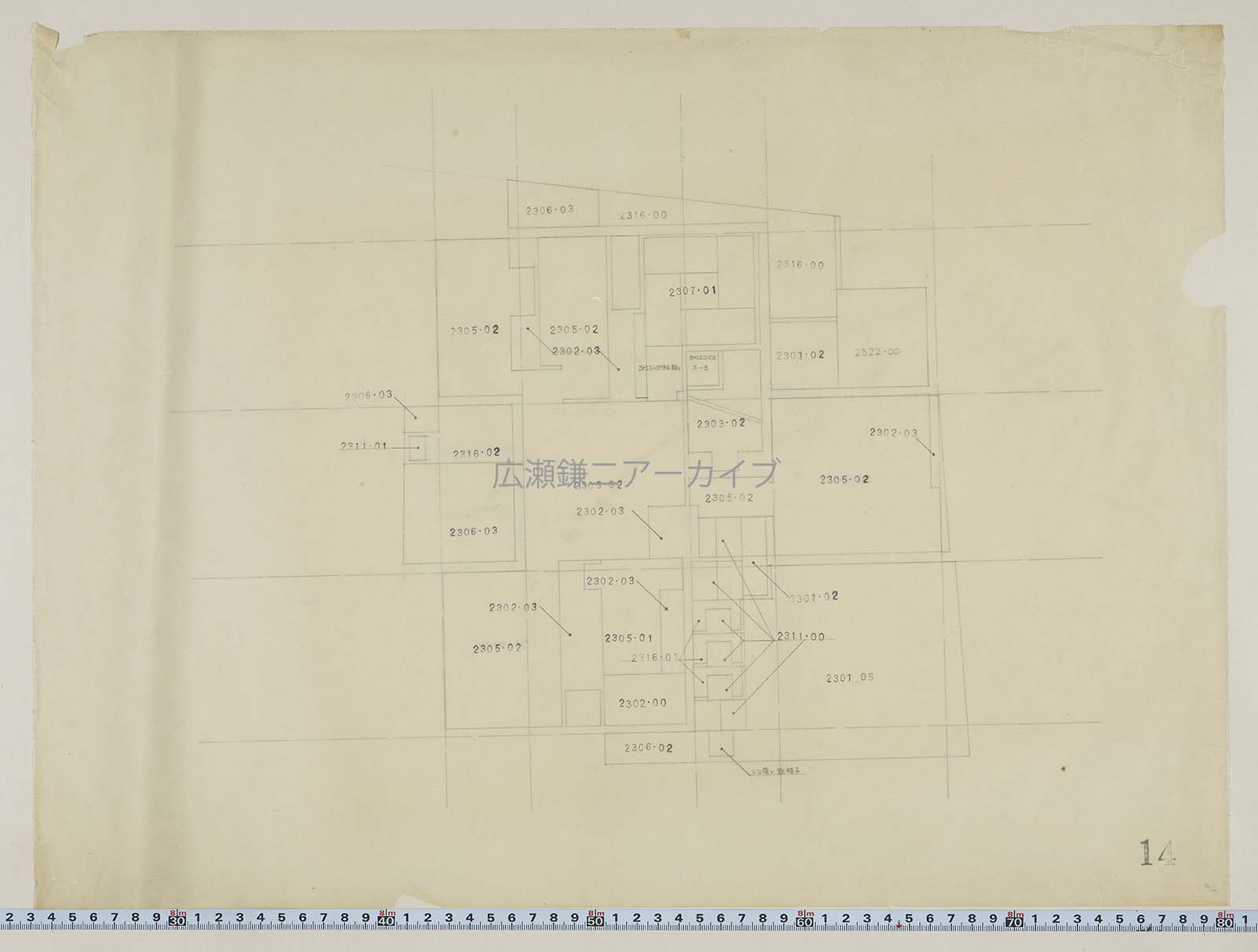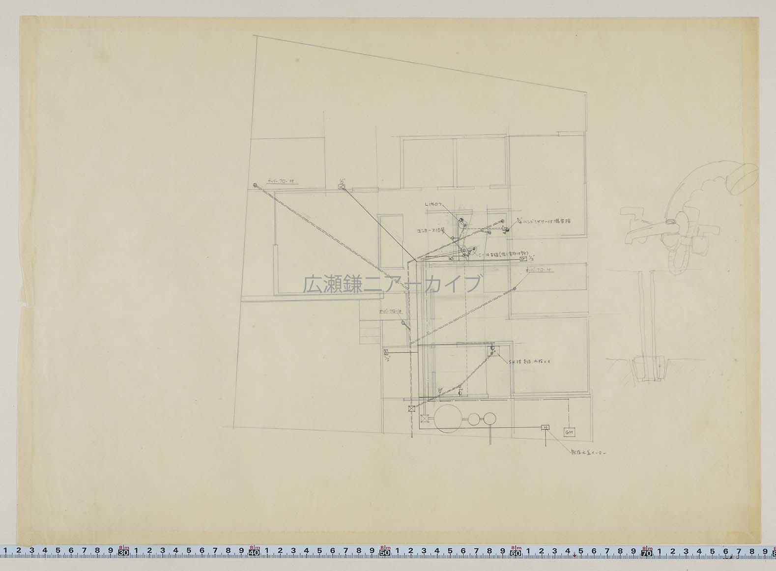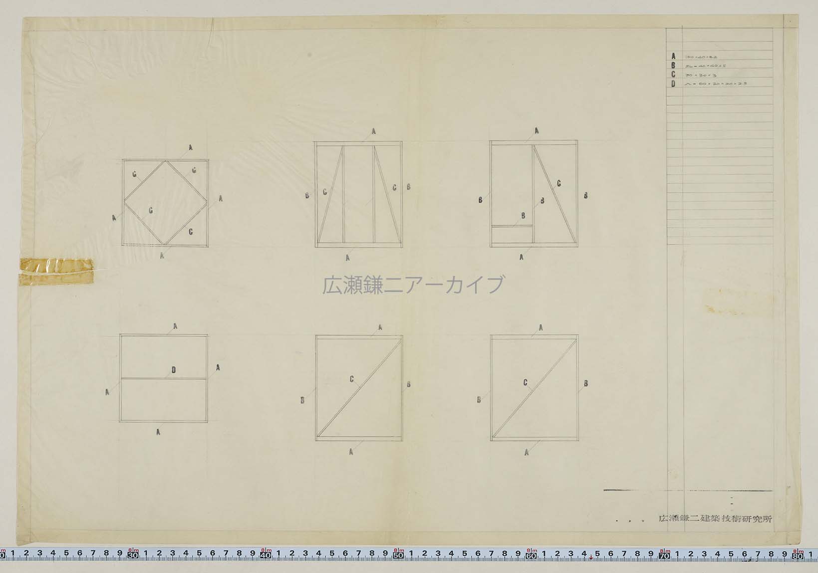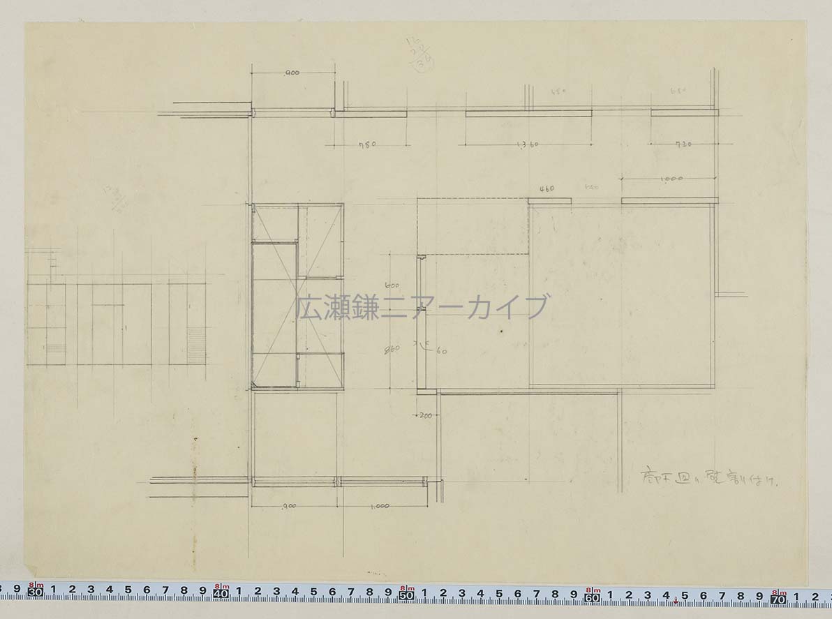 スペースユニットは居間、食堂、台所、和室、浴室・便所、子供室A・ B、寝室で、このスペースユニットの間に廊下、玄関、納戸、機械室や庭からの池が貫入したりしている。