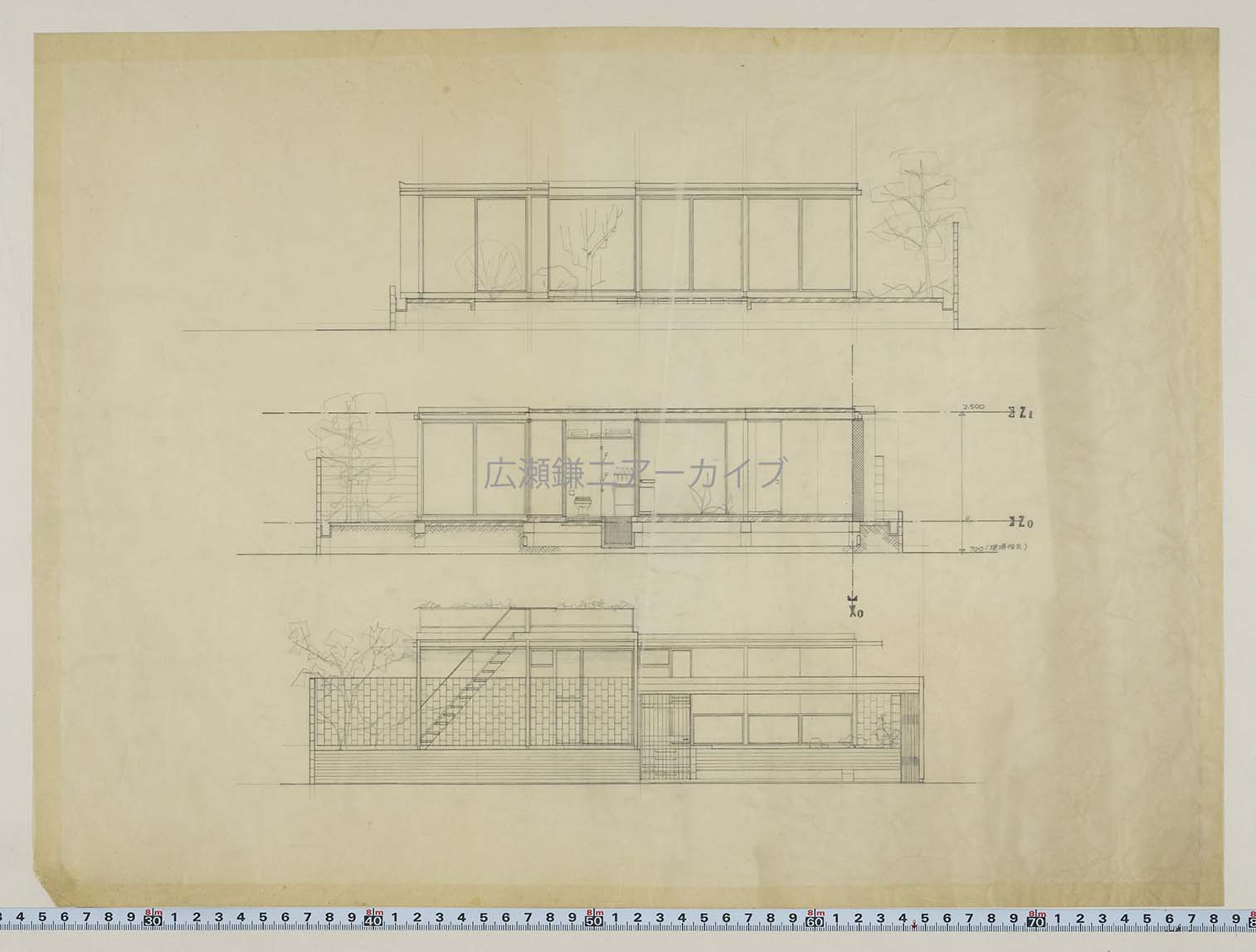 SH-1の敷地に建てられた自邸。 SH-1に住みながら、 2期に分けて工事が行われた。初めてのスペースユニットシステム。
